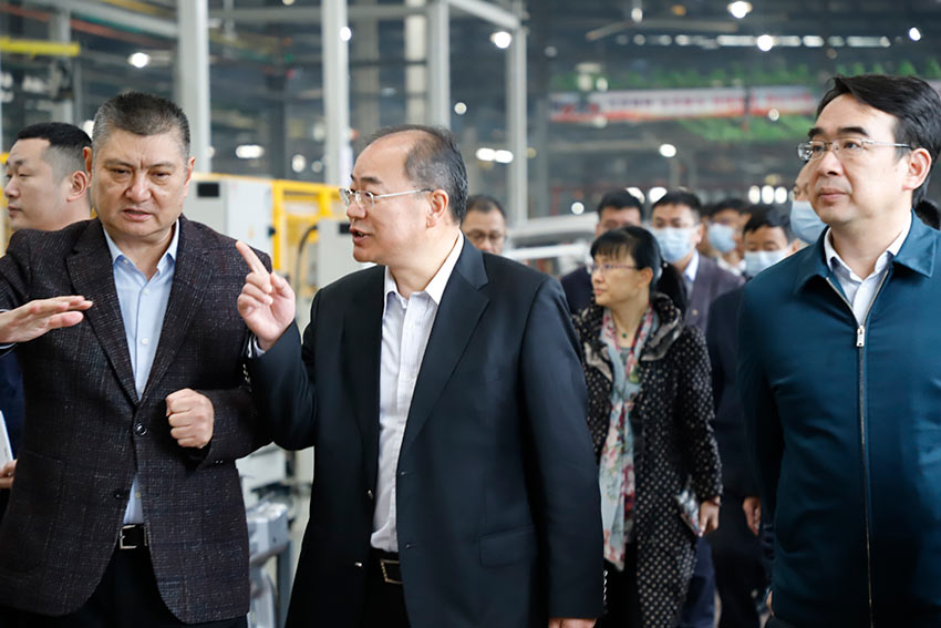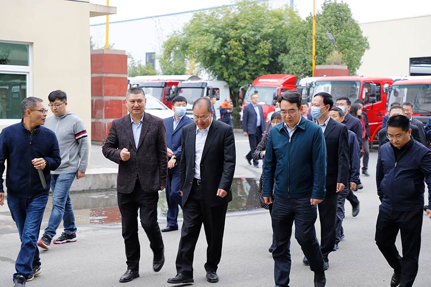 1020日上午,中國航天科工集團有限公司黨組成員、副總經(jīng)理龔波一行對正和汽車進行參觀調研,十堰市副市長王曉、茅箭區(qū)副區(qū)長李炎濤等市、區(qū)領導隨行,正和汽車董事長王澤洋一行陪同參加調研。