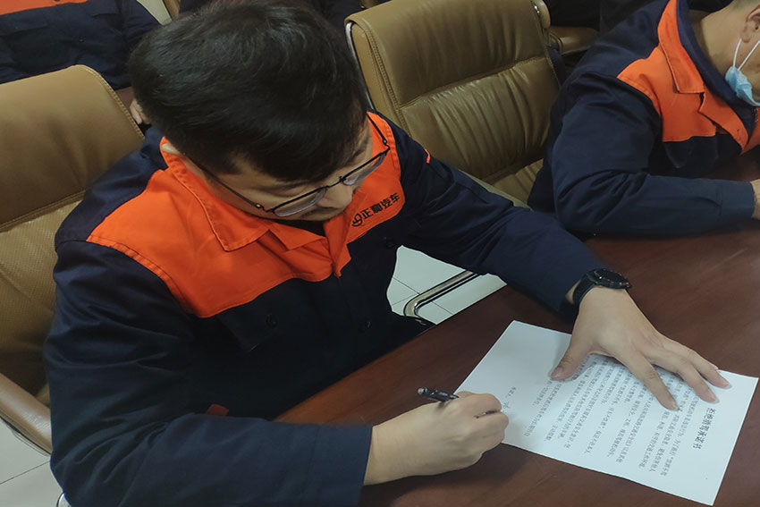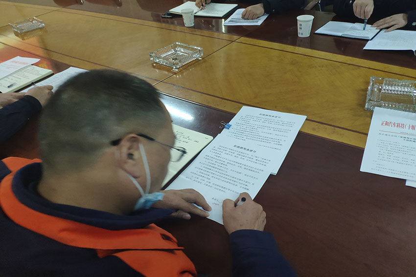 公司員工現(xiàn)場(chǎng)簽訂《拒絕酒駕承諾書》。